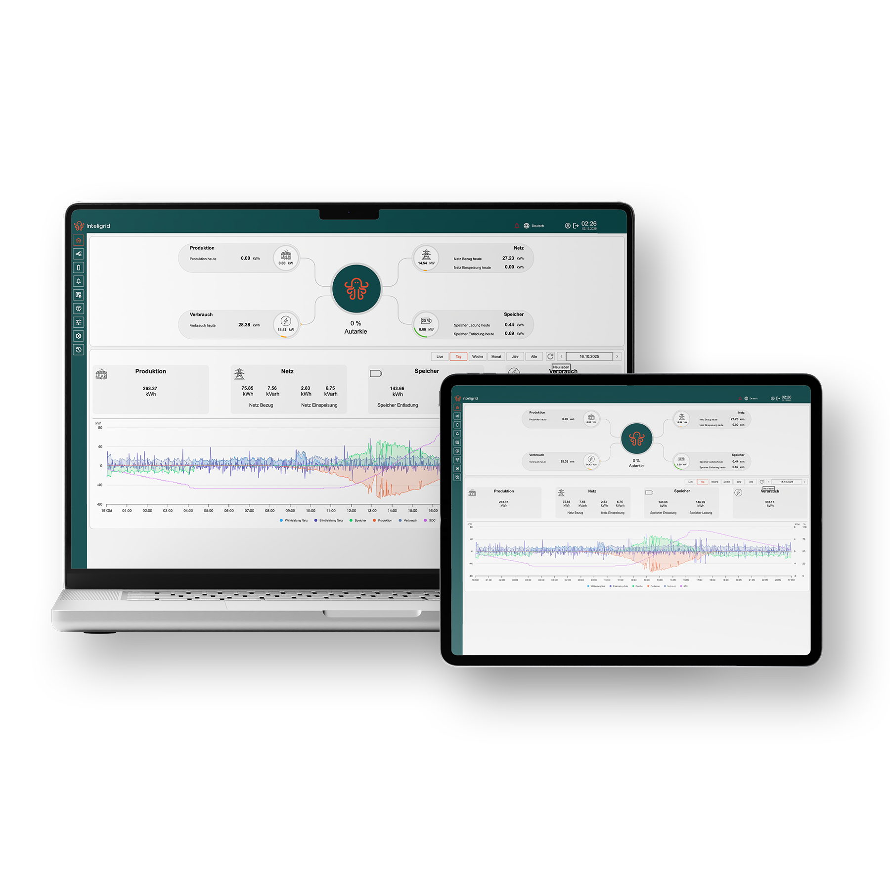 InteliCore ist die leistungsstarke Energiemanagement-Software (EMS) der Inteligrid AG für moderne Microgrid-Systeme. Die Software verbindet, steuert und optimiert dezentrale Energieerzeuger wie Photovoltaik, Batteriespeicher, Notstromaggregate, Wärmepumpen oder weitere flexible Verbraucher. Durch die intelligente und vorausschauende Regelung sichert InteliCore eine zuverlässige, effiziente und unterbrechungsfreie Energieversorgung – unabhängig vom öffentlichen Stromnetz.